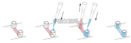 圖二:沖洗換液方法,藍色代表新的無細胞培養(yǎng)基